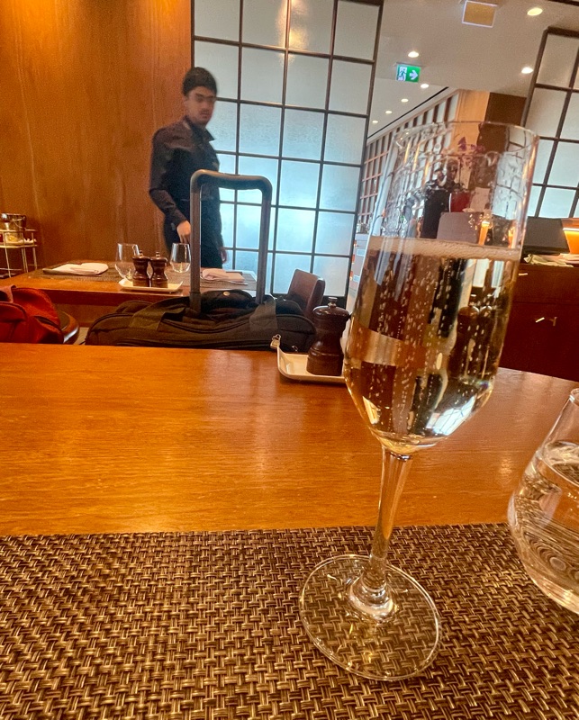 We had spent a restful night at the Accor Sofitel connected to Terminal 5, and arrived at the lounge entrance after traveling between terminals on a free inter-airport section of the Heathrow Express.