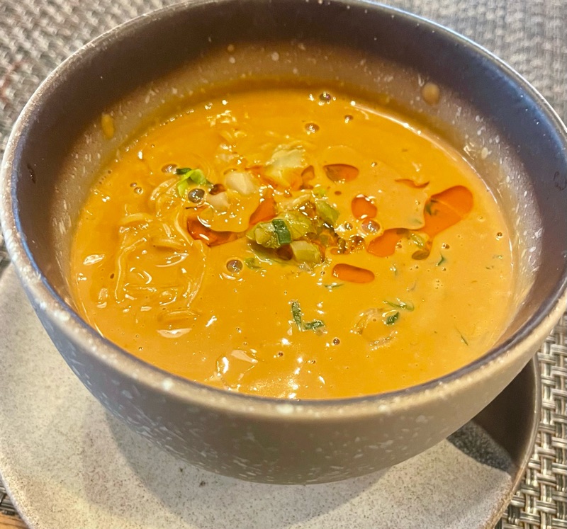 Brian chose a pan-fried Miso Salmon and Kathy a Vegetable Hot and Sour Soup. Still feeling peckish, as the British put it, we topped off our meals with Dan Dan Noodles.