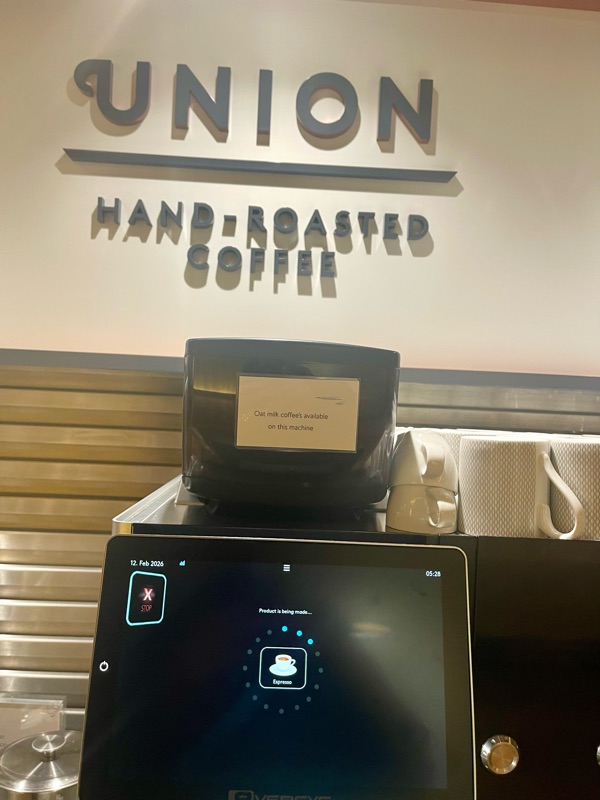 The next morning we were up earlier than we needed to be, and found our way to T5 and BA's Fast Track security entry at the far end for security and direct entry to BA's First  Lounge, to which our OneWorld Emerald status entitles us. We enjoyed two of the best machine-made Cappuccinos we've ever tasted, and limited ourselves to one glass of Champagne each at 5:30 AM.. Moderation in all things!