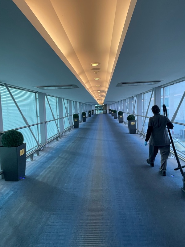 We landed at LHR's Terminal 3 Our onward BA flight to Larnaca, Cyprus (LCA) was departing from Terminal 5 the next morning at 7:01 AM, and we had a plan. We took the 10-15 minute bus ride from Terminal 5 to Terminal 3, went through immigration e-gates there without having to talk to anyone, turned right as we emerged into the terminal and easily found our way to the Sofitel, attached to the terminal by a walkway.