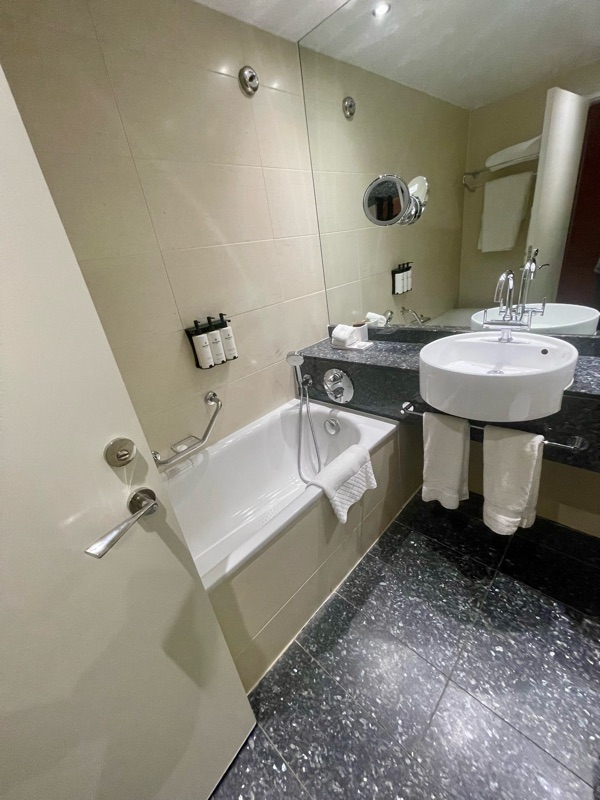 Our room was ready for us, and we were pleased to see a separate bath and shower, not a given even in five-star hotels.