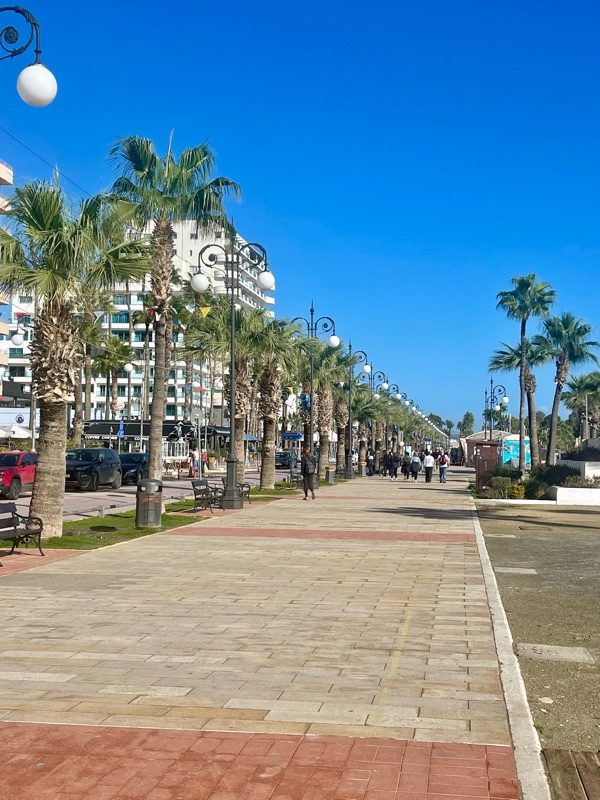 During our five days on the ground, we didn't once feel the need for transportation other than our feet. We walked two to three miles daily, mainly along the waterfront esplanade framing Finikoudes Beach, only a block or two from our hotel.