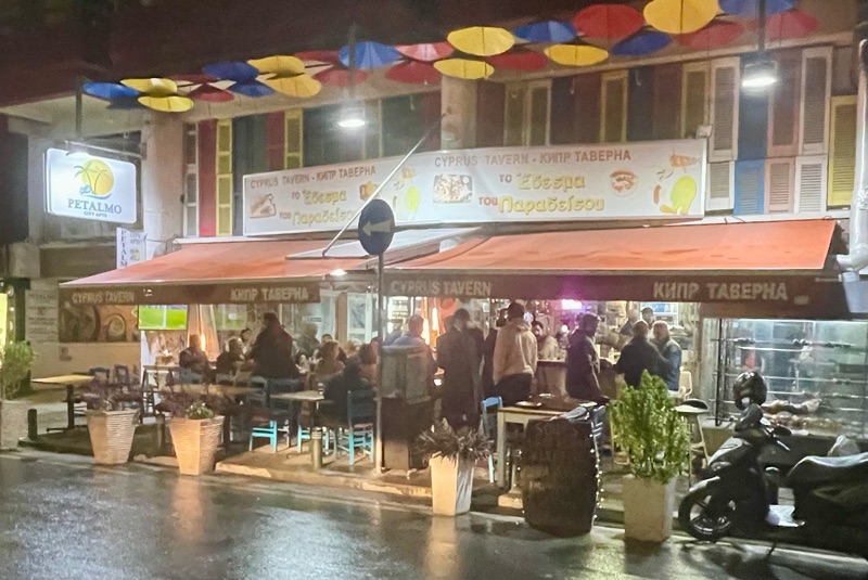 For our opening night of dining (not opera) we walked around the corner from our hotel and managed to find a table at To Edesma Tou Paradisou, a Greek Cypriot taverna ranked by Trip Advisor as Number 5 of 384 restaurants in Larnaca.
