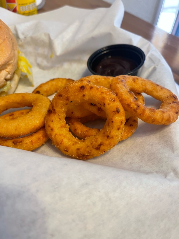 One slightly rainy day we ducked in for lunch at a little hole-in-the-wall joint called the Potbelly. We dined on hearty pulled pork sandwiches with fries (Brian), onion rings (Kathy), and a local beer, Keo, for each of us.