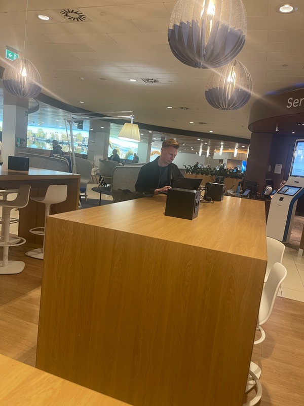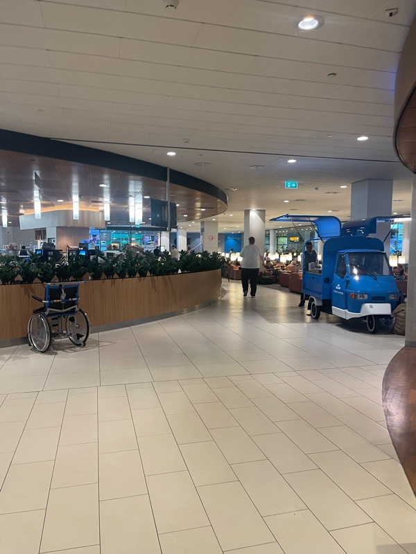 We’d bought our way into business class for the second leg, five dollars more than a three-hour lounge pass, and it includes a lounge pass.